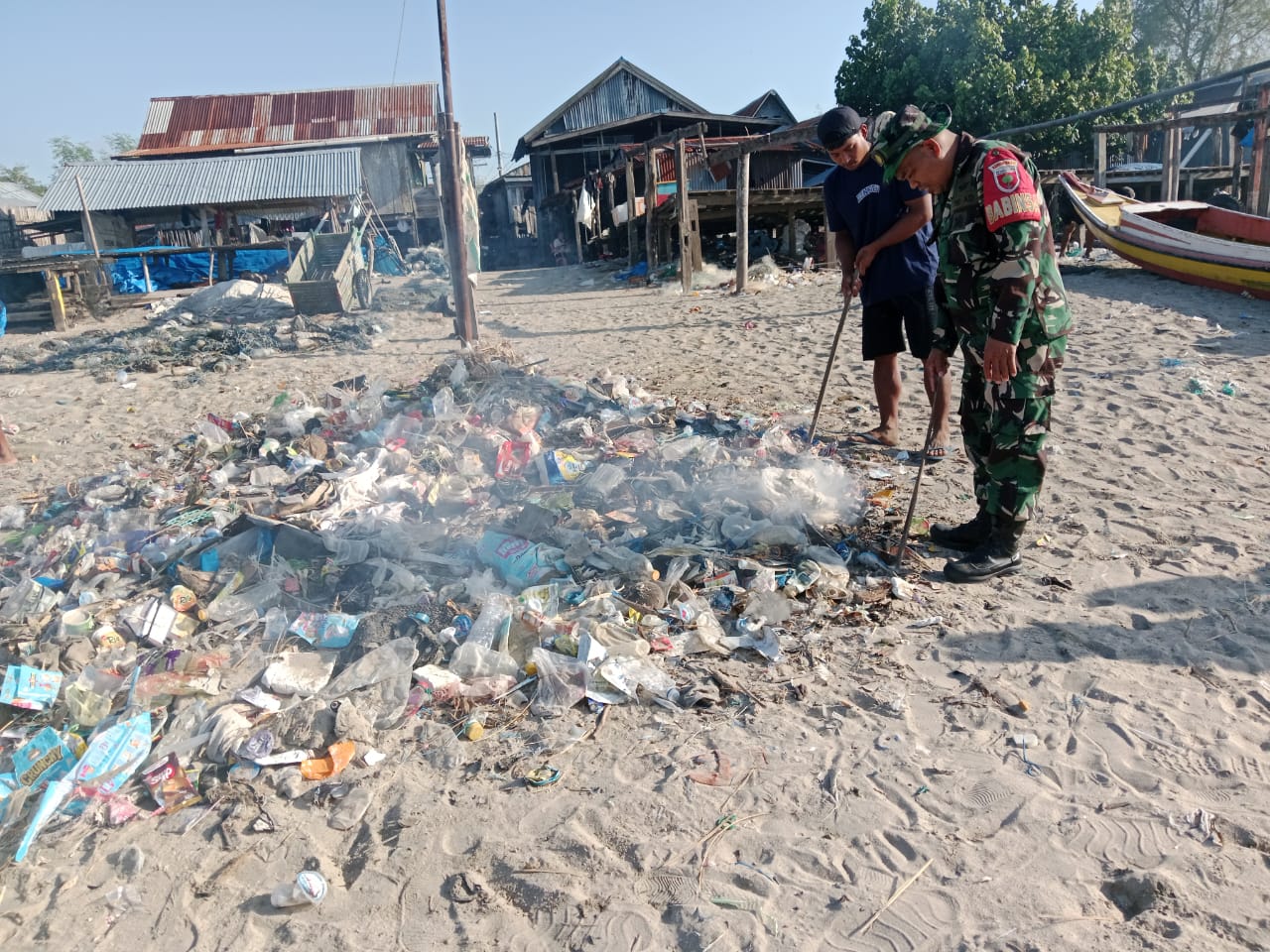 Koramil 1411-07/Herlang Bersama Warga Gelar Kerja Bakti di Pantai Alorang, Bulukumba