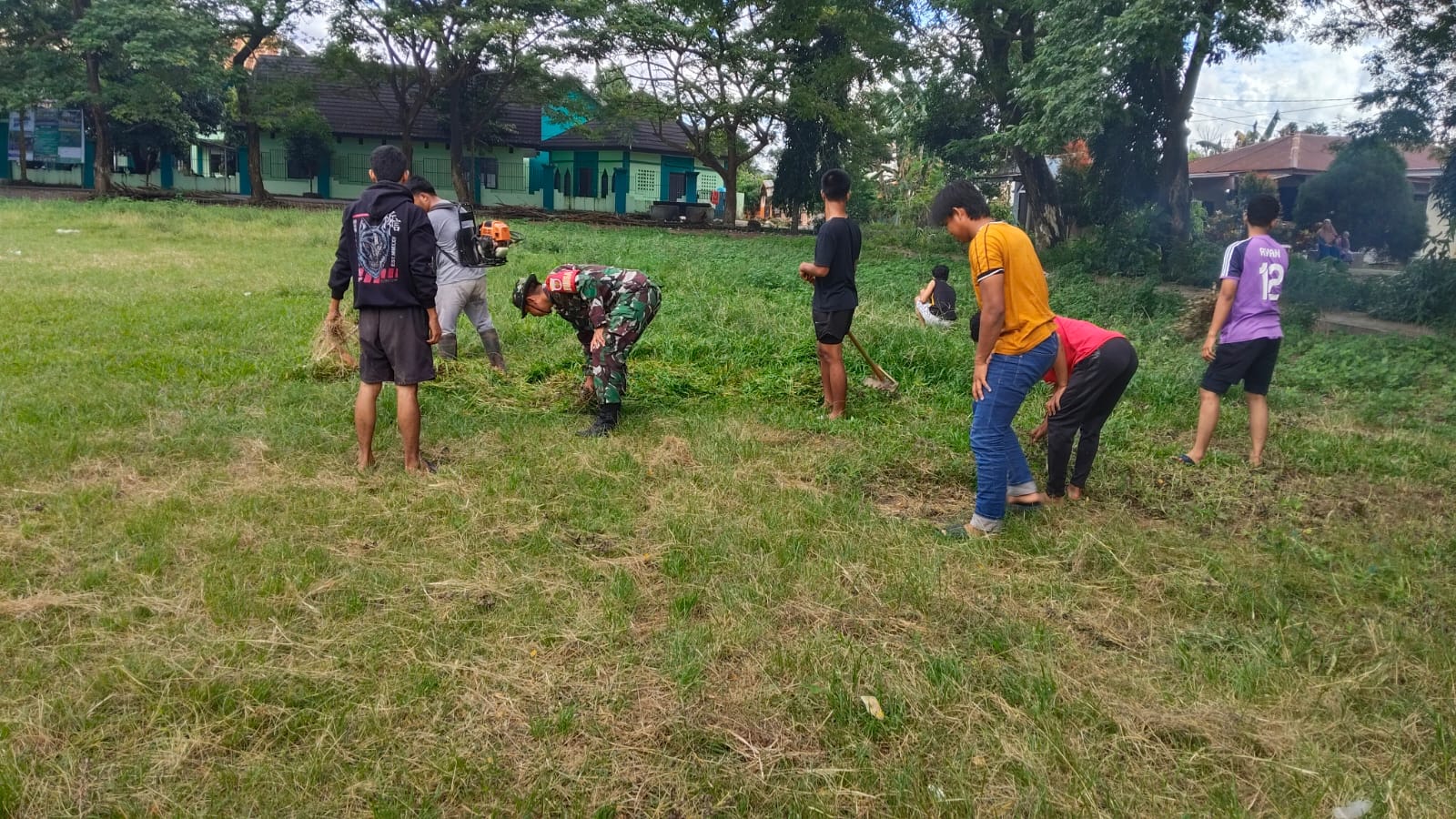 Karya Bakti Bersihkan Lapangan Bola, Sinergi Babinsa dan Tokoh Pemuda Desa Bonto Macinna