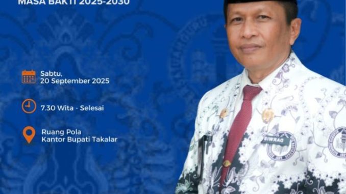 TAKALAR/KABAR21- Bupati Takalar, Ir. H. Firdaus Dg Manye, MM, secara resmi mengukuhkan Pengurus Persatuan Guru Republik Indonesia (PGRI) Kabupaten Takalar untuk masa bakti 2025-2030. Acara pengukuhan berlangsung di Ruang Pola Imannidori Kantor Bupati Takalar pada hari Sabtu, 20 September 2025. Pengukuhan ini menandai awal kepemimpinan baru PGRI Takalar, dengan harapan dapat meningkatkan kualitas pendidikan di kabupaten tersebut.