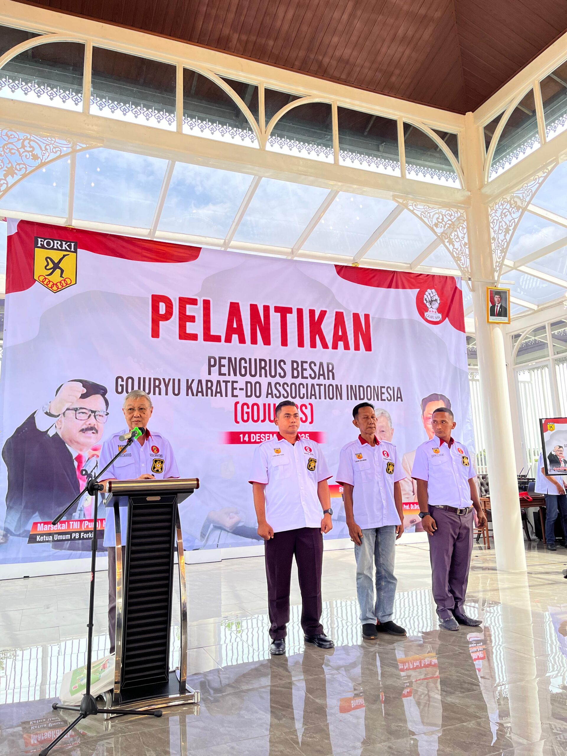 -Jakarta, 14 Desember 2025, Bertempat di Jalan Wijaya Kusumu Jakarta Selatan, Pengurus Besar Gojuryu Karate-Do Association Indonesia secara resmi dilantik Oleh Ketuam Umum PB FORKI Marsekal TNI (Purn) Hadi Tjahjanto, S.I.P, kegiatan tersebut dihadiri oleh seluruh Pengurus Besar Goju Ass, Perguruan Perguruan lain di bawah Foki, Para Professor dan Doktor serta undangan undangan lainnya.