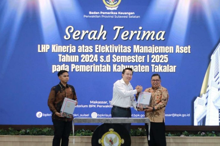 MAKASSAR,KABAR21– Bupati Takalar Mohammad Firdaus Daeng Manye menerima Laporan Hasil Pemeriksaan (LHP) Kinerja atas Efektivitas Manajemen Aset Tahun 2024 sampai Semester I 2025 dari Badan Pemeriksa Keuangan (BPK) Perwakilan Provinsi Sulawesi Selatan. Penyerahan berlangsung di Auditorium BPK Perwakilan Sulsel, Jalan Andi Pangeran Pettarani No. 31, Kota Makassar, Senin (19/01/2025).