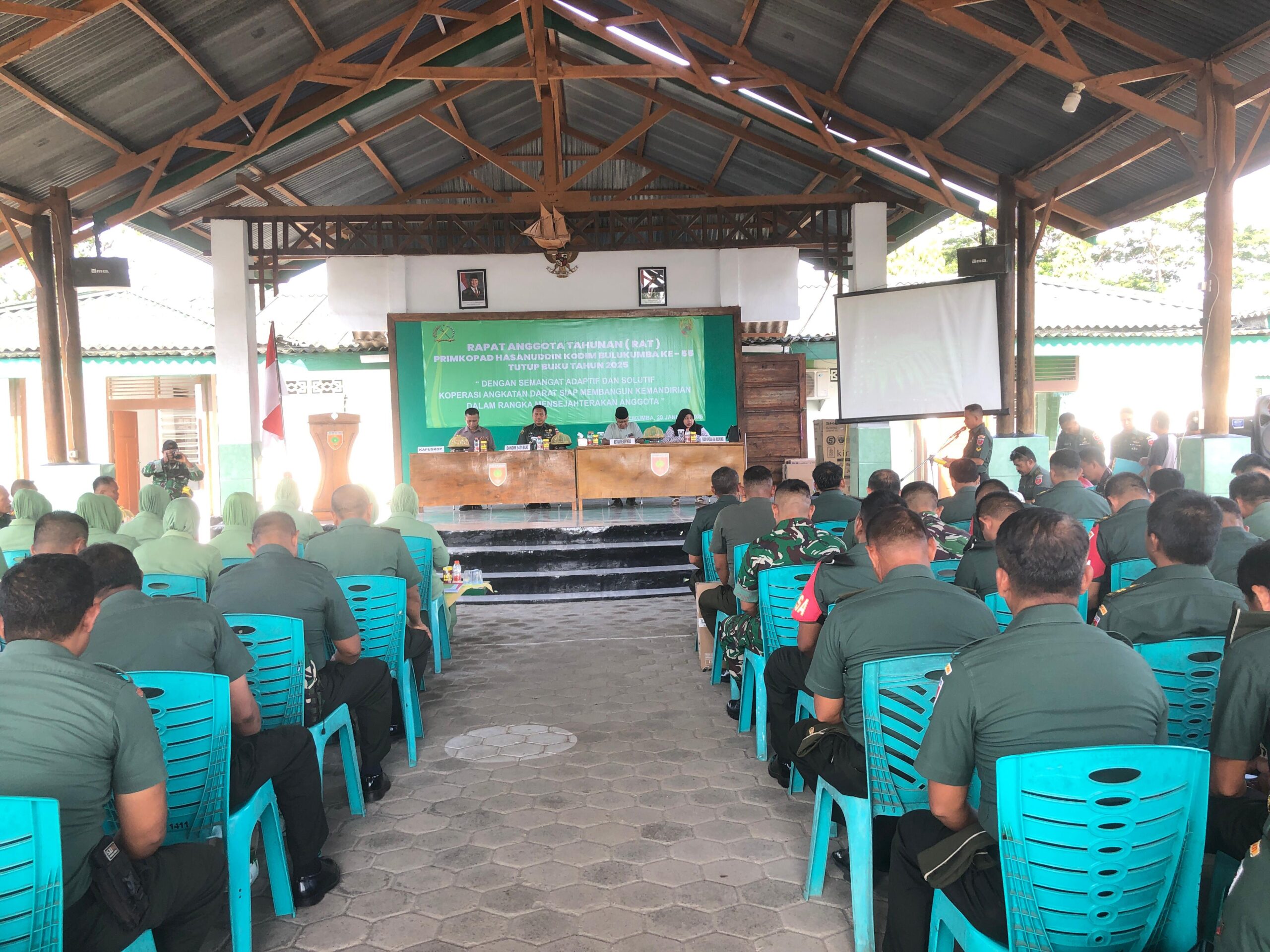 KABAR 21/ Bulukumba – Primer Koperasi Angkatan Darat (Primkopad) Hasanuddin Kodim 1411/Bulukumba menggelar Rapat Anggota Tahunan (RAT) ke-55 Tutup Buku Tahun 2025 pada Kamis, 29 Januari 2025. Kegiatan yang dilaksanakan di Aula Terbuka Kodim 1411/Blk, Jalan Akhmad Yani, Kelurahan Ela-Ela, Kecamatan Ujungbulu, Kabupaten Bulukumba, dan dihadiri sekitar 200 orang pengurus serta anggota koperasi.