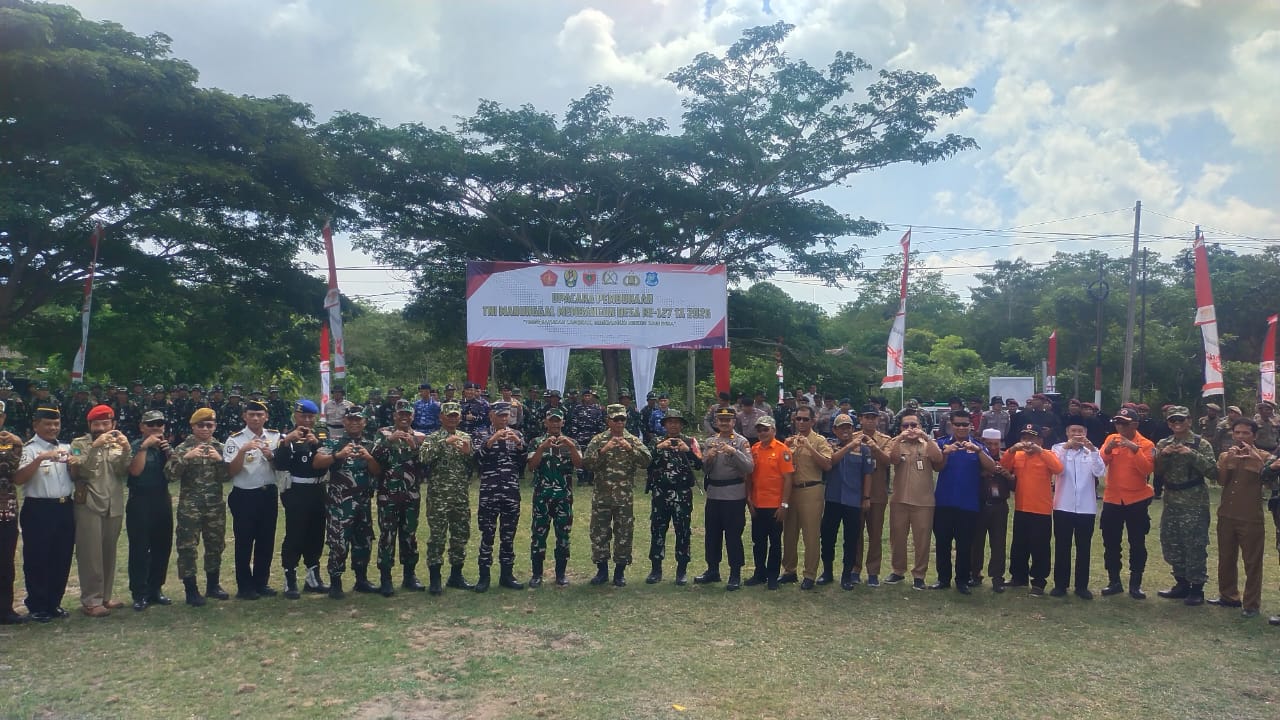 Di sekeliling lapangan, berdiri jajaran TNI lintas satuan, unsur Polri, pejabat pemerintah daerah, tokoh agama, tokoh pemuda, hingga pelajar. Sebuah pemandangan yang memperlihatkan Indonesia dalam skala kecil—beragam, bersatu, dan bekerja bersama.