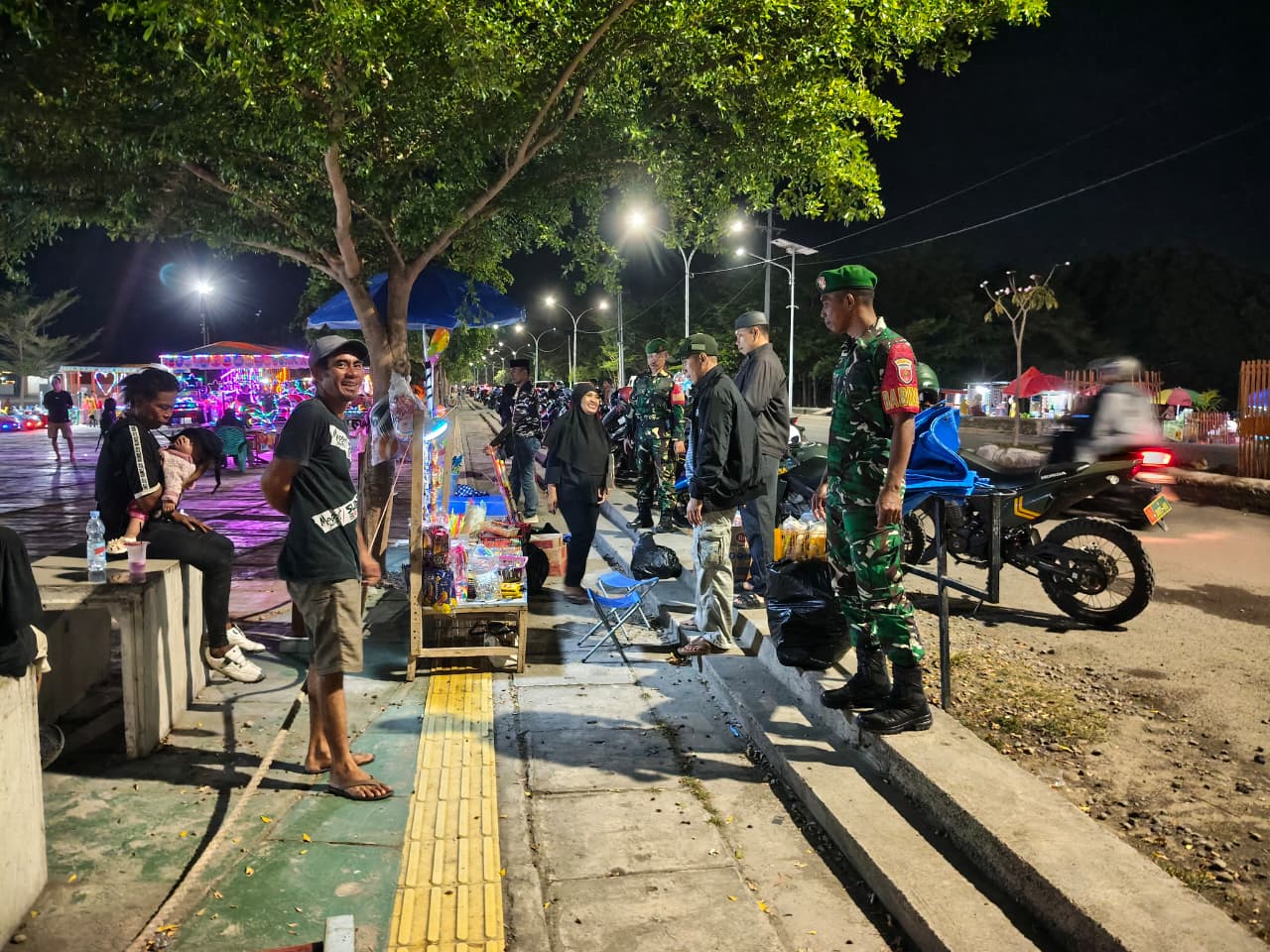 Patroli gabungan ini menyasar sejumlah titik strategis dan pusat keramaian, di antaranya, Area Makoramil 1411-04/Ub (Titik Start), Warung Kopi (Warkop) tempat berkumpulnya warga, Pasar Cekkeng, Pelabuhan Bentenge dan Tempat Pelelangan Ikan (TPI) Bentenge.